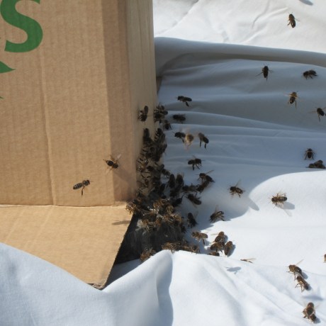 Notice the huge full pollen sack on the bee’s leg (“The Bees Knees”)